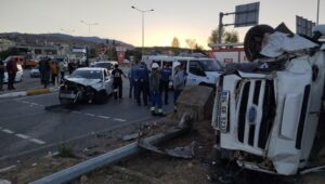 Sivas’ın Suşehri ilçesinde otomobille çarpıştıktan sonra devrilen minibüsteki 20 kişi yaralandı.