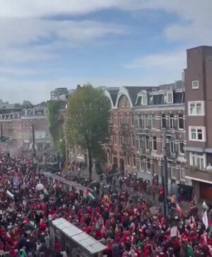 Hollanda’nın başkenti Amsterdam’da 250 bin kişi, Gazze’deki saldırılara sessiz kalan hükümeti protesto etti.